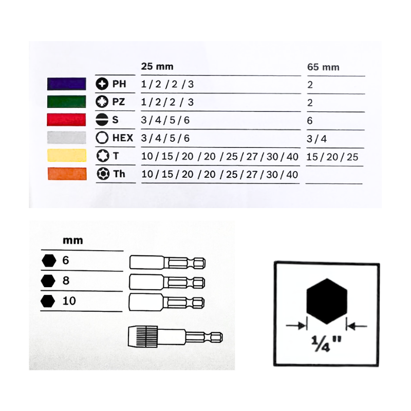 - For rotary drills/drivers, For impact drill/drivers, For screwdrivers