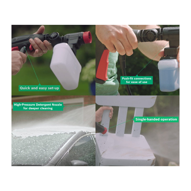 - Bosch 360° Gun can be angled to clean hard-to-reach areas effortlessly