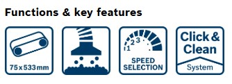 The GBS 75 AE Professional is Bosch’s corded robust sander delivering maximum material removal. It is designed with aluminum rollers for heavy-duty use. It features a sturdy toothed belt and metal toothed belt wheels providing a long tool lifetime. It can also be easily positioned upside down for use as a stationary tool. The sander is intended for the removal of varnish, surface sanding, smoothing and cleaning surfaces as well as renovating floors and is is applicable on wood, metal and plastic surfaces. It is compatible with the Bosch Click & Clean system using a dust adapter.
