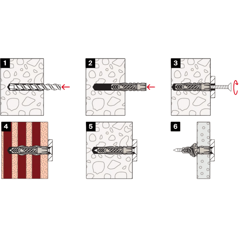 - Turning in the screw causes the UX to expand in the solid building material and to knot within the cavity.