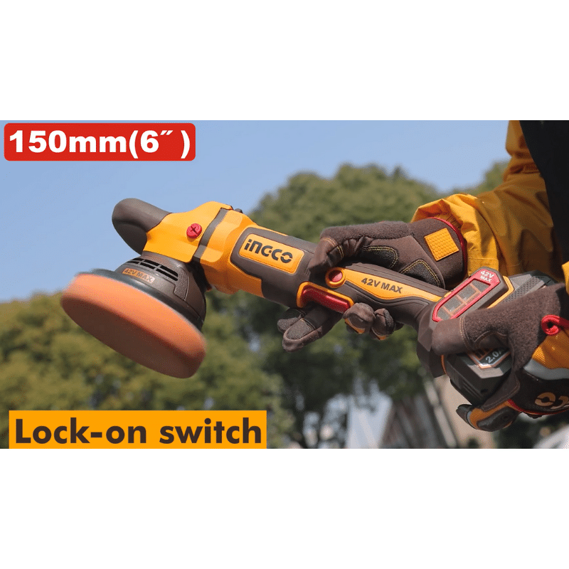 INGCO APLI42151, 42V Compact Brushless Cordless Polisher Set, 150MM (6″), With Accessories Set
