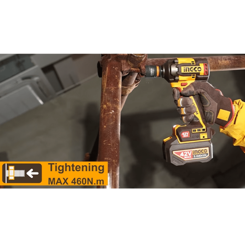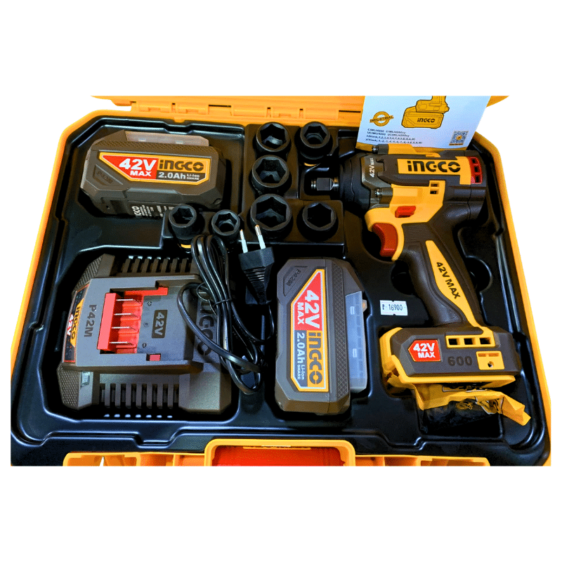 INGCO CIWLI42461, 42V Compact Brushless Cordless 1/2″ Impact Wrench Set, 460Nm, With Accessories Set