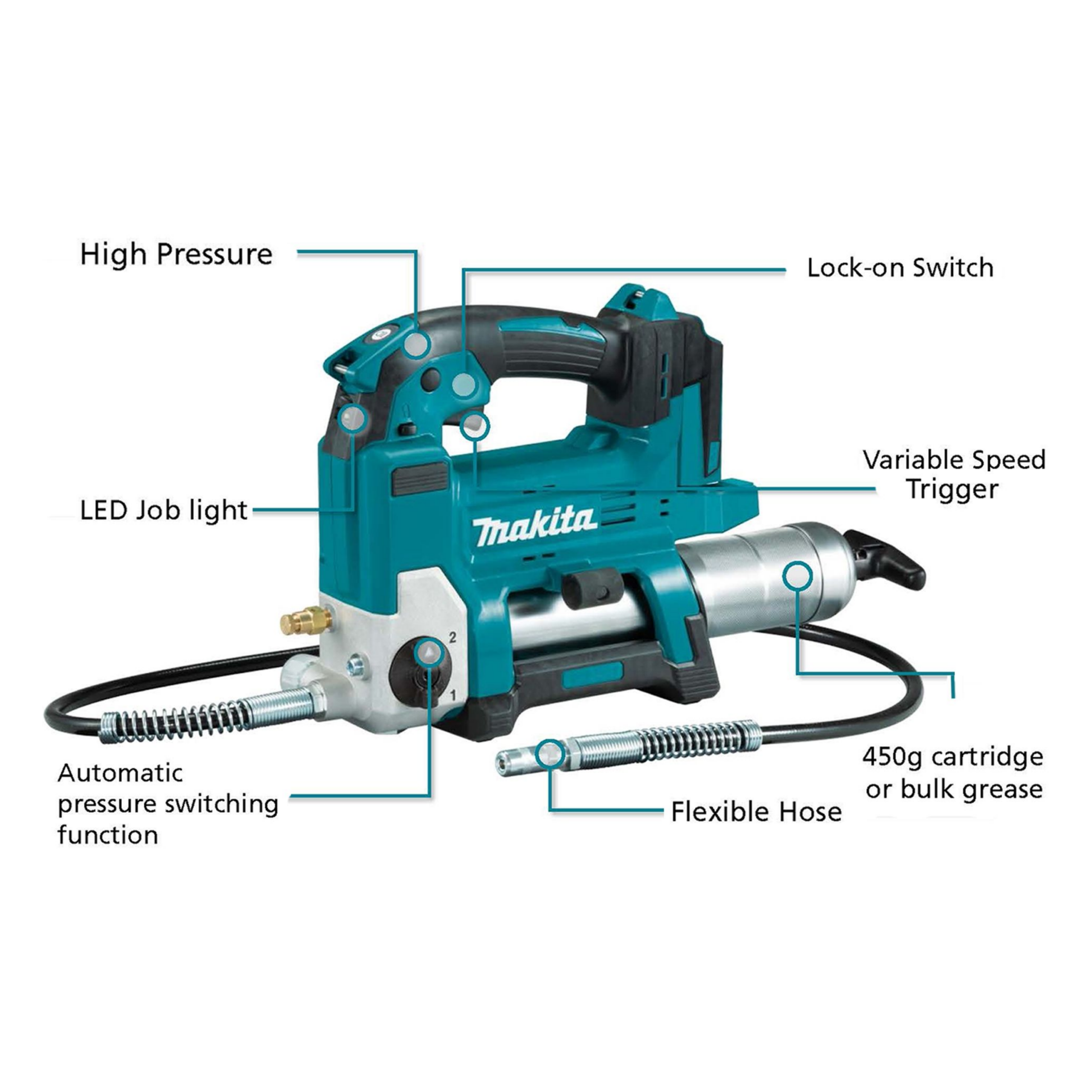 MAKITA DGP180Z, 18V CORDLESS GREASE GUN (BARE UNIT)
