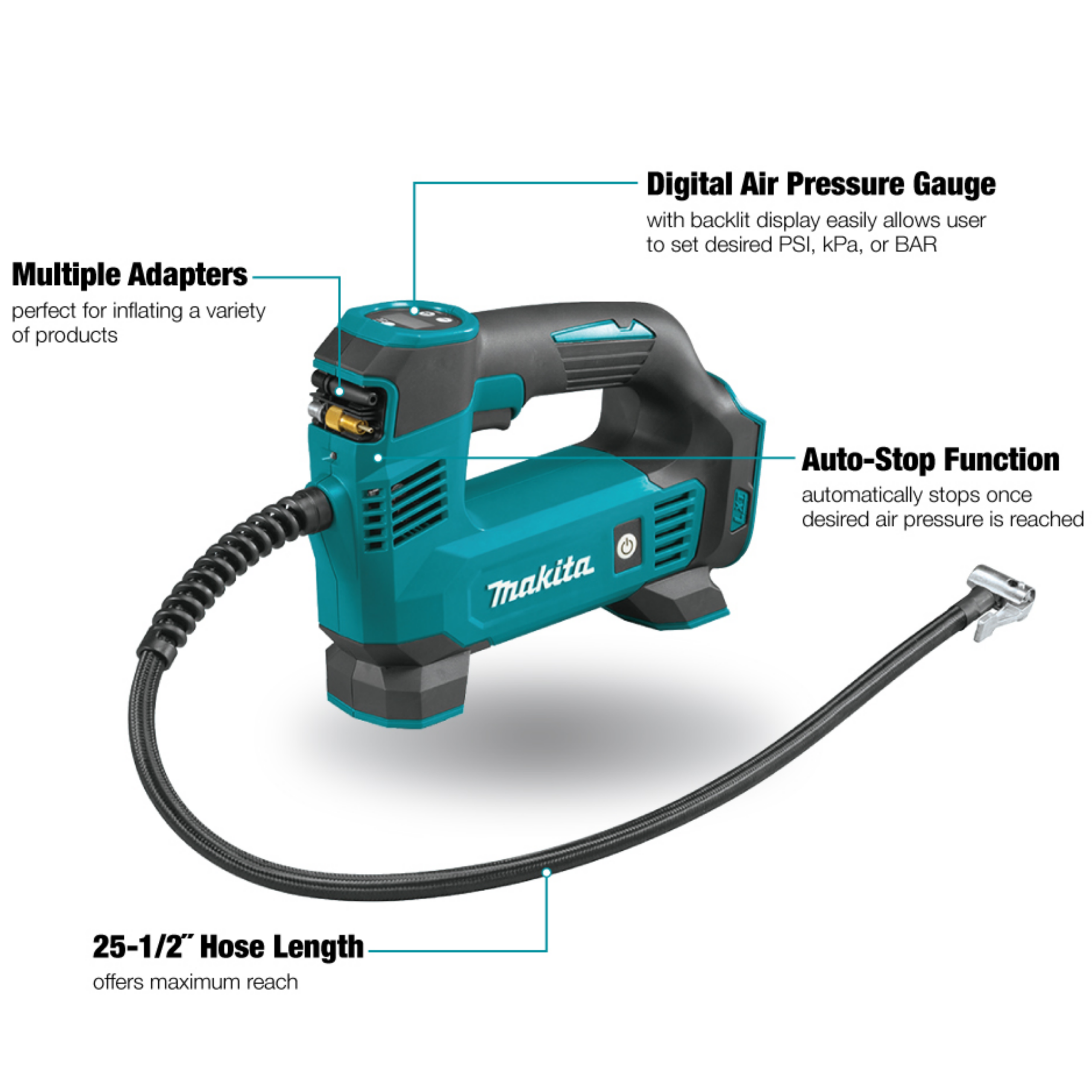 MAKITA DMP180Z, 18V CORDLESS INFLATOR (BARE UNIT)