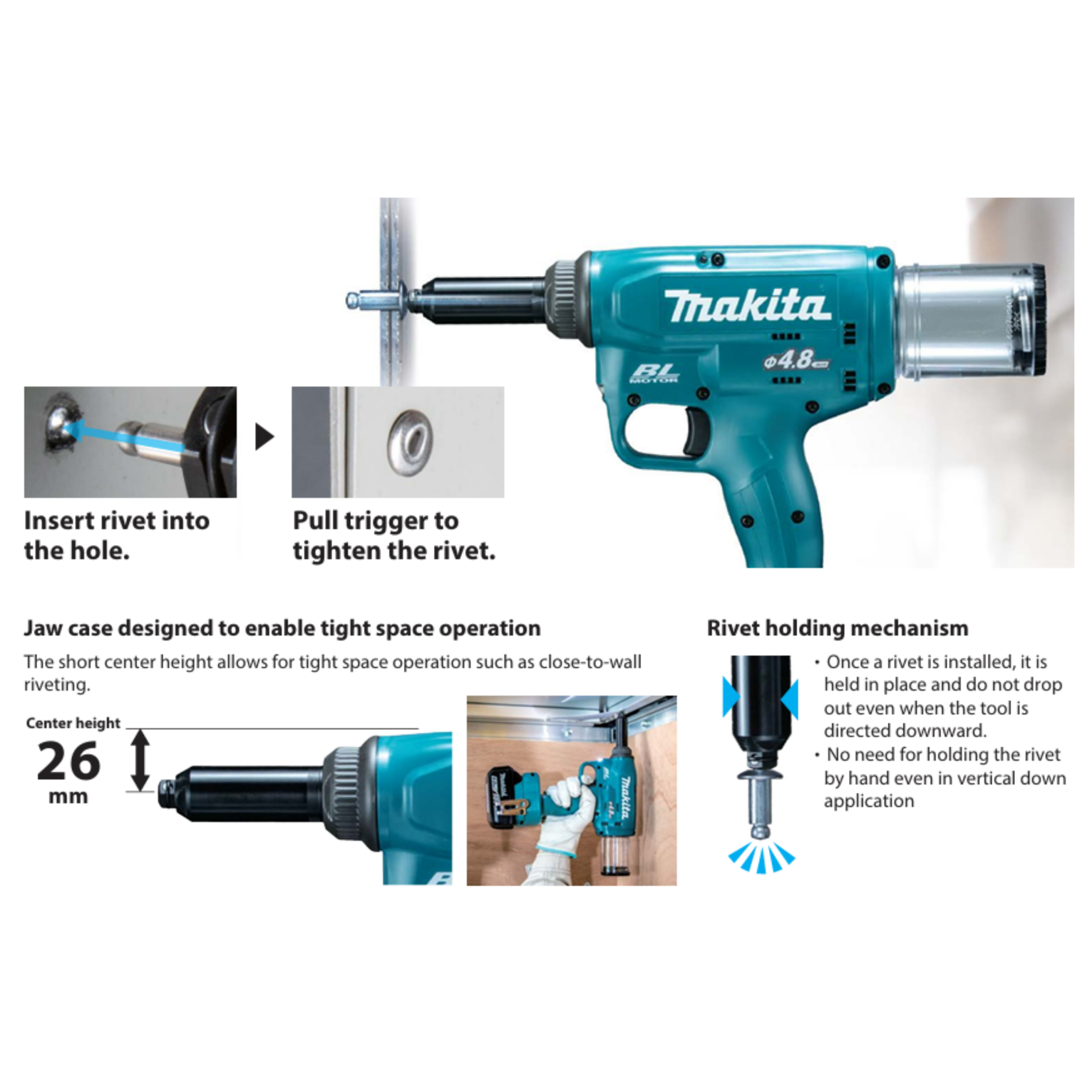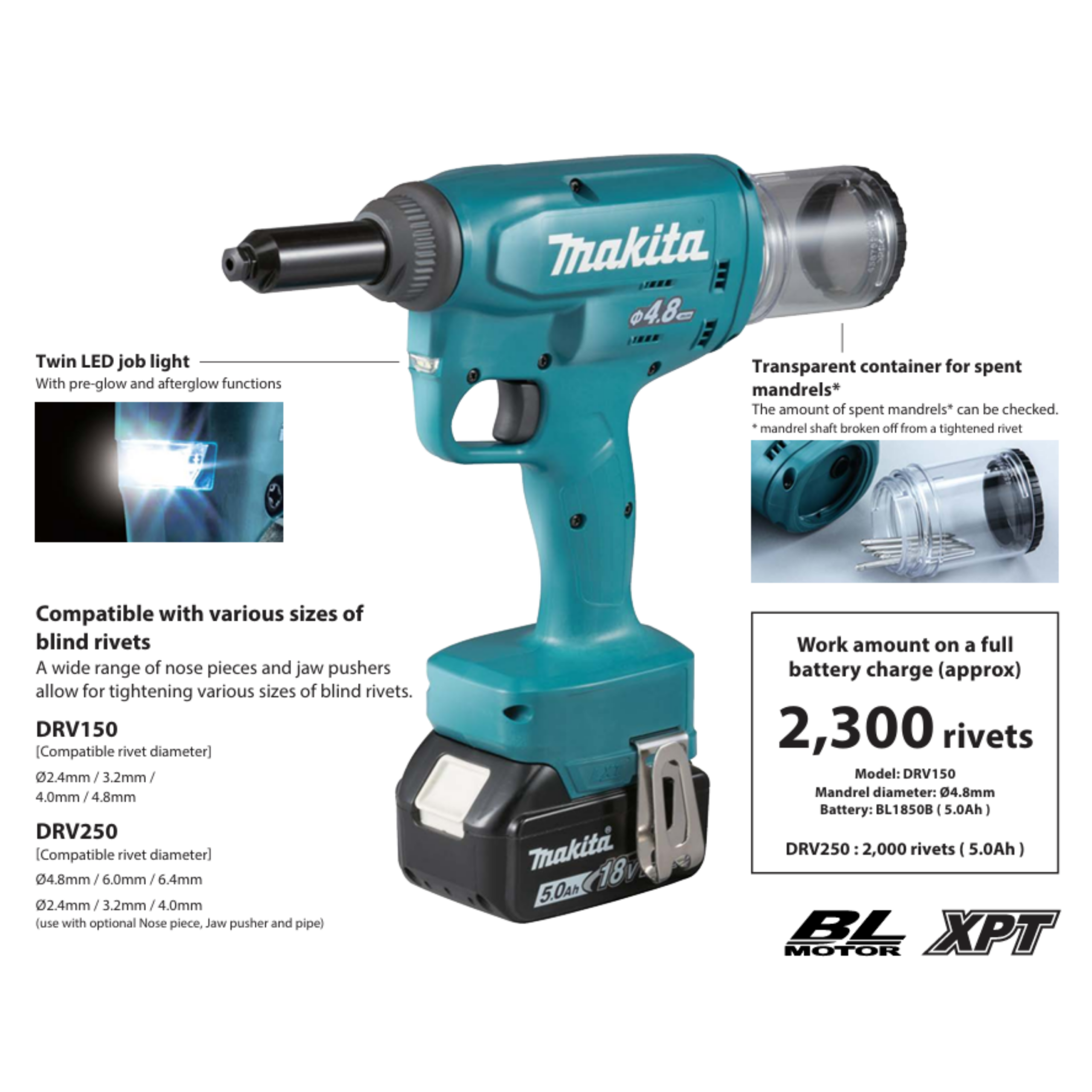 MAKITA DRV250Z, 18V CORDLESS BRUSHLESS RIVET GUN (BARE UNIT)