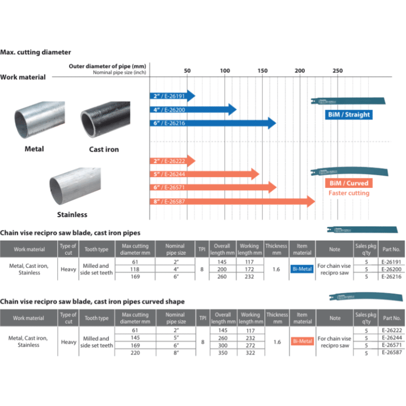 - 1x Bi-METAL RECIP BLADE 260MM x 1.6MMM 8TPI