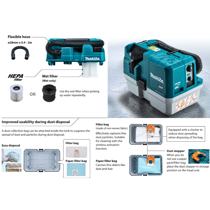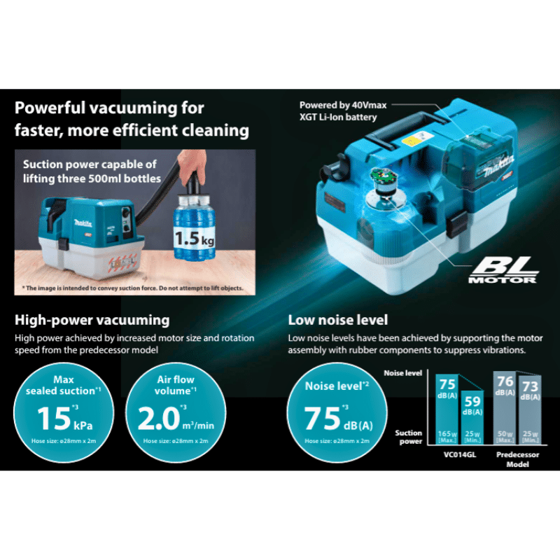 MAKITA VC014GLZ, 40V CORDLESS BRUSHLESS WET & DRY VACUUM, 7.5L, HEPA FLITER (BARE TOOL ONLY)