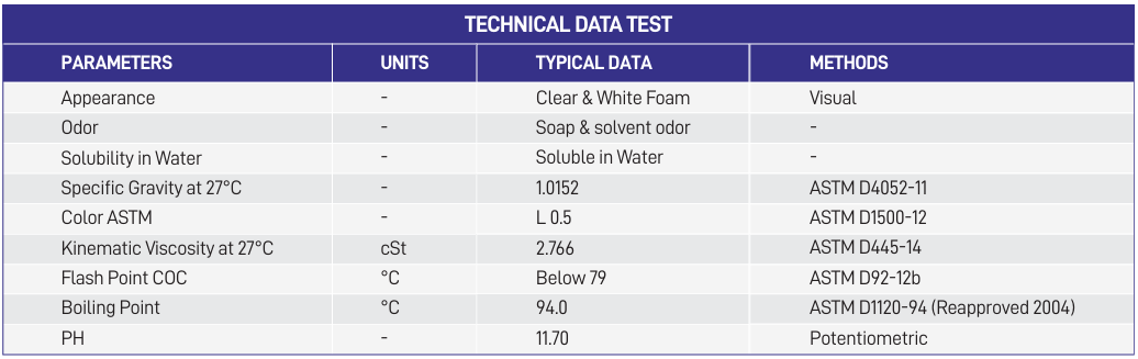 - Special blend of surfactants, detergents, emulsifiers and foaming to lift dirt